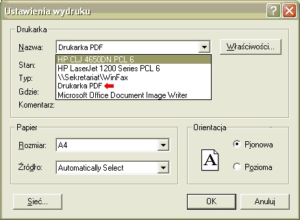 Rys.1. Wybór drukarki wirtualnej PDF