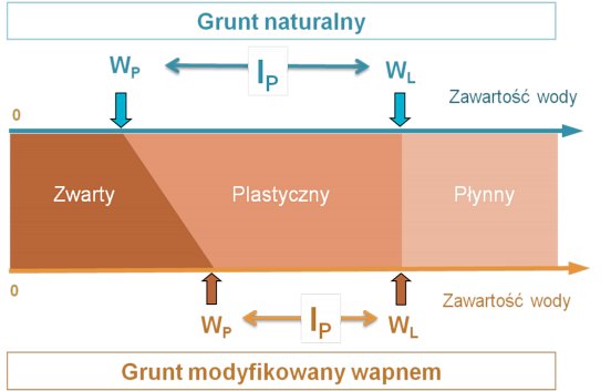 Uzdatnianie i stabilizacja gruntów plastycznych wapnem jest technologią powszechnie znaną i chętnie stosowaną w budownictwie lądowym. W procesie uzdatniania i stabilizacji gruntów plastycznych powszechnie wykorzystuje się tlenek wapnia CaO, znany w handlu pod nazwą wapna palonego. Wapno to ma dużą zdolność do łączenia się wodą. Wynikiem jest powstanie wodorotlenku wapnia Ca(OH)2. Reakcji chemicznej towarzyszy wydzielanie się dużej ilości ciepła, stąd reakcja ta określana jest mianem egzotermicznej. Tworzenie się wodorotlenku wapnia oraz wydzielanie się ciepła powodują osuszenie gruntu spoistego. Dodatkowo mają miejsce zjawiska flokulacji i aglomeracji cząstek gruntu, a także wymiany jonowej polegające na podstawianiu jednowartościowych jonów Na+ przez dwuwartościowe jony Ca2+. Powoduje to, że grunt plastyczny przechodzi w stan quasi piaskowy dający się łatwo zagęszczać.