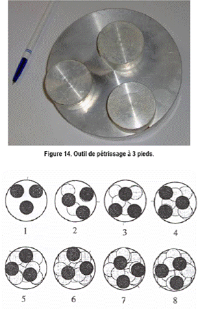 | Zdjęcie 2. Widok stempla do zagęszczania gruntu w badaniu Proctora. Poniżej schemat zagęszczania próbki gruntu plastycznego. |