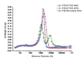 | Rysunek 4. Rozkład porów dla gruntu stabilizowanego wapnem – wilgotność powyżej optymalnej |