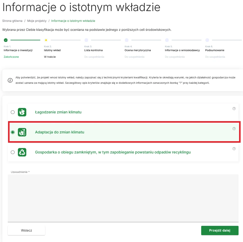 Istotny wkład w cel „adaptacja do zmian klimatu”