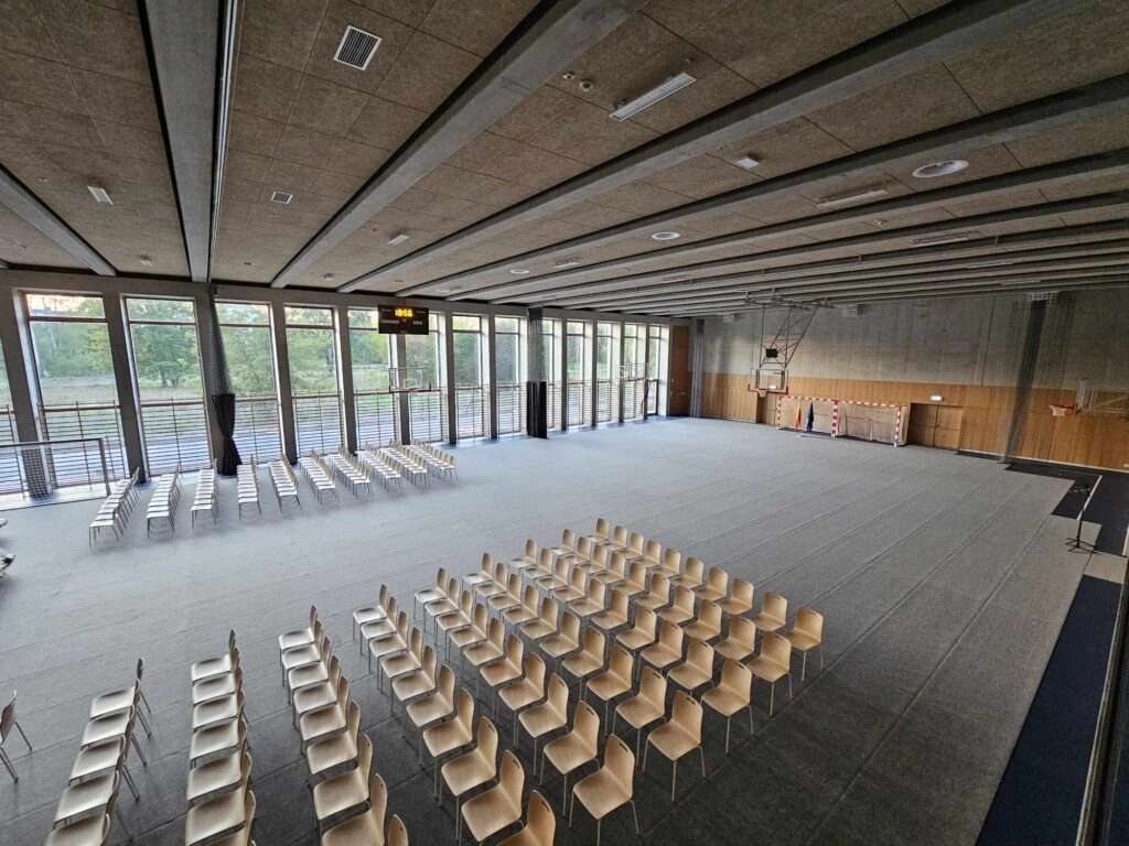 Nowoczesna hala sportowa (20 x 40 m) z trybuną na ponad 60 miejsc, interaktywnymi tablicami wyników, a także wygodnymi szatniami jest na parterze. Dzięki niezależnemu wejściu, systemowi kontroli dostępu oraz opcji oddzielenia od pozostałej części budynku może być udostępniana po godzinach lekcyjnych. Z hali jest przejście do mniejszej sali gimnastycznej, która pełni funkcję zaplecza.