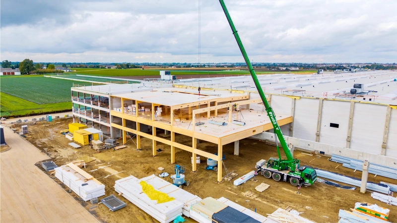 Ponadto wyjątkowy w skali kraju biurowiec, będzie największym budynkiem o konstrukcji z drewna masywnego w Polsce — ok. 6 tys. m kw. powierzchni użytkowej i łącznie 2 tys. 125 m sześc. drewna klejonego KLH CLT + BSH. Obiekt został zaprojektowany tak, by ograniczyć negatywny wpływ na środowisko. Ponieważ drewno wiąże dwutlenek węgla w procesie fotosyntezy podczas wzrostu drzew, magazynując go w swojej biomasie, to CLT tworzy niejako naturalny magazyn CO2, obniżając tym samym jego emisję do atmosfery. Zatem zastosowana w budowie biurowca technologia doskonale wpisuje się w ideę zielonego budownictwa, wykorzystując drewno, które jest zasobem odnawialnym, a także przyczyniającym się do zmniejszenia emisji CO2 w porównaniu do tradycyjnych materiałów, takich jak beton czy stal. Co więcej zastosowanie drewna CLT, zamiast żelbetu pozwoliło także zredukować przyszłe zużycie energii.