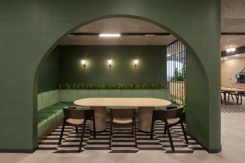 Biophilic design to jeden z popularniejszych kierunków aranżacji wnętrz i architektury ostatnich lat. Podejście to polega na świadomym wprowadzaniu elementów natury do przestrzeni. Roślinność stanowi jedynie jeden z jego komponentów. „Równie istotne są odpowiednia barwa i natężenie światła oraz otwarcie przestrzeni na otoczenie. Duże znaczenie mają także naturalne materiały i organiczne kształty” – tłumaczą architektki SAAN. Projektowanie zgodne z zasadami biofilnego designu nie tylko poprawia walory estetyczne wnętrz, ale także niesie ze sobą wiele korzyści dla zdrowia. „Przede wszystkim reguluje rytm serca i obniża poziom kortyzolu. Wprowadzenie natury uspokaja układ nerwowy. Dodatkowo sprawia, że pracownicy są bardziej produktywni i zadowoleni ze swojej pracy” – dodają.
