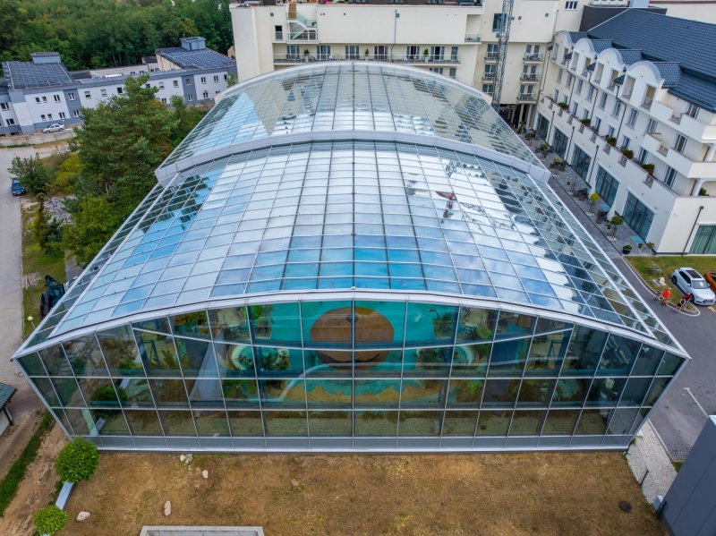 - Binkowski Resort Kielce to hotel, którego główną atrakcją są Baseny Tropikalne, przez co jest uważany za jeden z najnowocześniejszych w Polsce. Znakiem rozpoznawczym basenów jest przeszklona konstrukcja, którą wieńczy potężny, rozsuwany dach, wykonany z niemal 4000 m² szkła samoczyszczącego Pilkington Activ™ Clear. Czyste szklane zadaszenie zapewnia dostęp naturalnego światła dziennego, a dodatkowo jego konstrukcja jest rozsuwana, co pozwala cieszyć się promieniami słońca w letnie dni. Konstrukcję uzupełniono o system wentylacji oraz nawiewu ciepła, co pomogło stworzyć dobre warunki dla życia roślin. To wszystko sprawia, że baseny zachowują swój tropikalny charakter przez cały rok i nawet zimą można poczuć się w nich jak w tropikalnym raju.