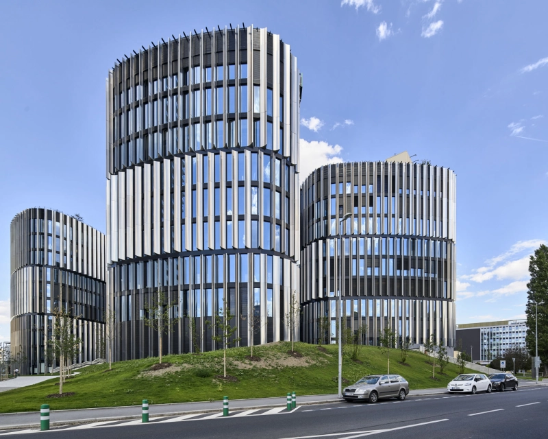 - Main Point Pankrac (Praga, Czechy) to kompleks pięciu, dziesięciokondygnacyjnych budynków, każdy o kształcie zaokrąglonego trójkąta. W realizacji wykorzystano szyby zespolone złożone z laminowanej szyby Pilkington Activ Suncool Optilam™ oraz Pilkington Optifloat™ Clear. Zastosowanie szyby laminowanej, dwustronnie powlekanej – z jednej strony samoczyszczącą powłoką, a z drugiej wysokoselektywną powłoką o właściwościach przeciwsłonecznych, pozwala na zachowanie nie tylko doskonałej widoczności, ale przede wszystkim zapewnia ochronę przed słońcem oraz izolacyjność cieplną.