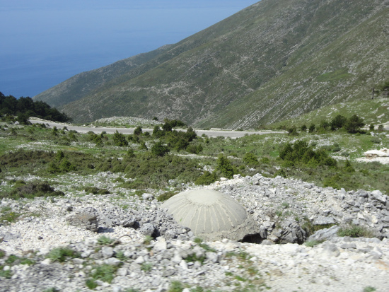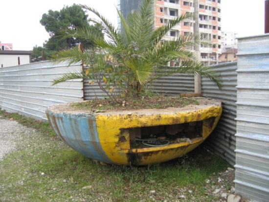 Część schronów jest jednak obecnie sukcesywnie rozbierana, zwykle chałupniczymi metodami, przez podpalanie starych opon (pękanie betonu wskutek naprężeń termicznych), wysadzanie (zaimprowizowane z worków nawozów potasowych prymitywne bomby burzące) czy młotami ręcznymi. Gruz raczej nie na wiele się przyda, ale stal, której w pojedynczym „grzybku” może być nawet 2 tony, to w przeżywającej budowlany boom Albanii łakomy kąsek, możliwy do spieniężenia w skupie nawet za kilkaset euro. Tak, właśnie euro, które jest praktycznie jedyną walutą w tym kraju[1], mimo, że ten nasz obecny sojusznik z NATO (przyjęty 1 kwietnia 2009 roku, przyjęty naprawdę, wcale nie na prima aprilis), do Unii jeszcze nie należy, a o wejściu do strefy euro nie ma co nawet marzyć.