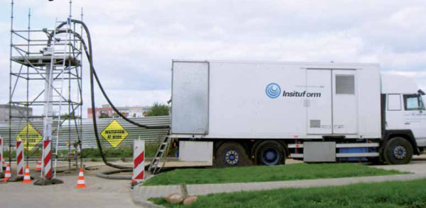 Renowacja rury z zastosowaniem metody Insituform® rozpoczyna się od wprowadzenia do oczyszczonego kanału, przy pomocy sprężonego powietrza lub wody pod ciśnieniem, cienkiej folii wykonanej z polietylenu, nylonu lub poliestru o odpowiedniej średnicy, aby zapobiec napływowi wód gruntowych do remontowanego kanału. Kolejnym etapem jest wprowadzenie do wewnątrz odpowiedniej rury Insituform® nasączonej żywicą.