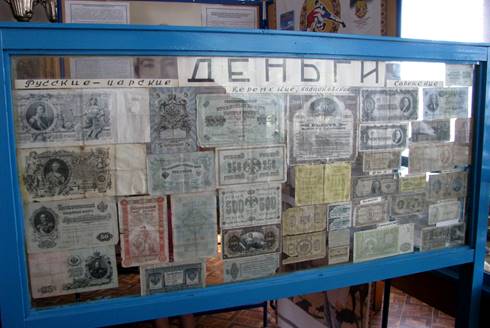 fot. 3. Gablota z banknotami w muzeum na Olchonie