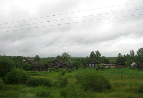 I tak to czas powoli schodzi, wagon trzęsie miarowo, w sumie do pokonania jest 12 milionów sztuk drewnianych podkładów kolejowych, pod którymi przekopanych niemal całkowicie ręcznie, łopatami, ok. 100 mln ton ziemi w postaci nasypów lub wąwozów. Za oknami albo drewniane chatynki, albo opuszczone i rdzewiejące pomniki epoki industrializacji, albo (w sumie najprzyjemniejsze) brzozowe lasy Uralu (fot. 14, 15 i 16).