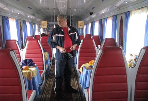 fot. 19. Wizyta w Sheratonie na kółkach, tak, ale dlaczego w dresie spytacie Państwo? Otóż w rosyjskim pociągu dres jest uniwersalny, jako strój podróżny, gimnastyczny (rano), wizytowy (w dzień), piżama (w nocy). I nie ma się co śmiać, proszę spróbować samemu.