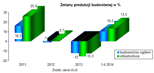 Wiele wskazuje na to, że po długim okresie regresu w budownictwie, w roku 2014 następują oczekiwane zmiany. Jeszcze w styczniu 2014 r. notowano spadek produkcji, ale od lutego nastąpiło ożywienie. Ostrożne przewidywania wskazują, że kryzys w budownictwie dobiegł końca. Jednakże uwzględnić trzeba, że budownictwo przystępuje do realizacji nowych zadań osłabione finansowo. Po „fali” upadłości wiele przedsiębiorstw nie osiąga zysku. Banki uważają budownictwo za sektor podwyższonego ryzyka i przedsiębiorstwa mają i będą miały trudności z uzyskaniem kredytów. Banki niechętnie będą udzielały gwarancji, a równocześnie brak (niewystarczające) środków własnych może utrudniać wykorzystanie kwot z Nowej Perspektywy 2014 – 2020.