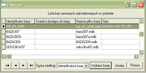 Rys. 4. Spis baz cenowych dołączonych do programu
