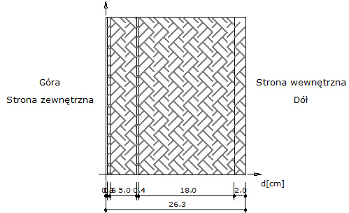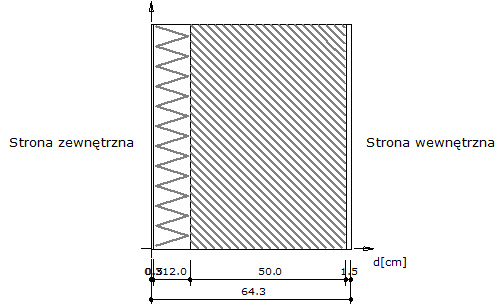 Rozpatrzmy sytuację, gdy przegrodę ocieplamy od zewnątrz. W tabeli 1 pokazano układ warstw i parametry charakteryzujące zastosowane w niej materiały (definicje tych parametrów podano w załączniku).