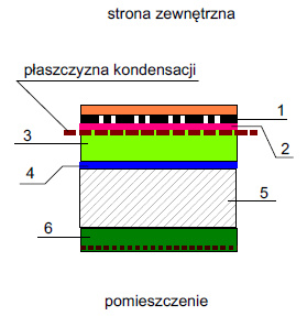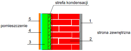 Rysunek 2 – Kondensacja w ścianie ocieplonej od wewnątrz