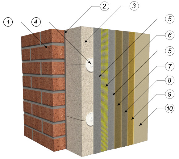 Rys. 1 - Budowa systemu ociepleń (ETICS) - rys. Atlas
