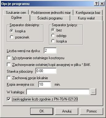 Opisane wyżej reguły są przyjęte w Normie Pro jako domyślne: kwoty wszystkich podsumowań są zaokrąglane do dwóch miejsc po przecinku, a sposób zaokrąglania jest identyczny z zasadami przyjętymi w ww. rozporządzeniu (opcja Zaokrąglanie liczb zgodnie z PN-70-N-02120 wyczyszczona).