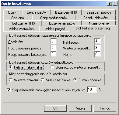 Rys.2. Opcje kosztorysu - karta 'Dokładność prezentacji'