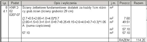 - Tak wyliczona wartość jest mnożona przez wartość obmiaru i daje wartość pozycji (i jest zaokrąglana do precyzji podsumowania pozycji).