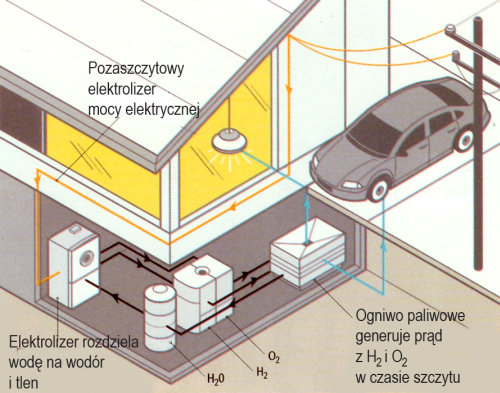 Czas na ogniwa paliwowe, w których energia elektryczna jest wytwarzana w wyniku reakcji utleniania paliwa dostarczonego z zewnątrz. W odróżnieniu od akumulatorów, superkondensatorów, w których energia wytwarzanego prądu musi zostać wcześniej zgromadzona wewnątrz tych urządzeń, ogniwa paliwowe nie muszą być wcześniej ładowane. Wystarczy tylko doprowadzić do nich paliwo. Najczęściej wykorzystywanym paliwem w tych ogniwach jest wodór. Dlatego właśnie nazywamy je wodorowymi. Jakie jest ich wykorzystanie? Przede wszystkim w energetyce, sondach i statkach kosmicznych, systemach zasilania awaryjnego, samochodach na wodór. W przypadku tych ostatnich musimy pamiętać, że ogniwa paliwowe wytwarzają prąd, stąd mamy do czynienia z silnikami elektrycznymi, w odróżnieniu od silników, w których spalany jest wodór, czyli silników cieplnych. Poważnym problemem jest niestety sprawność takich ogniw, która osiąga 30 do 40%. Kolejnym ograniczeniem jest przechowywanie samego wodoru. W stanie gazowym musi być sprężony do wysokiego ciśnienia, a i tak jego gęstość objętościowa energii jest wielokrotnie niższa od benzyny. Natomiast w stanie ciekłym musi być przechowywany w bardzo niskim temperaturach (około -250 stopni C), a jego skroplenie jest bardzo energochłonne.