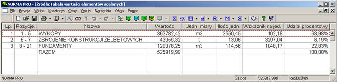 - ceny jednostkowe dla ustalonych jednostek przedmiarowych (obmiarowych) robót, dla przyjętego poziomu agregacji