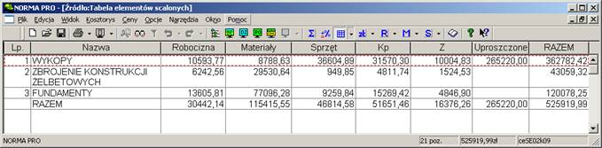 Oczywiście w ten sposób opracowany kosztorys można zawsze przekształcić w postać uproszczoną.