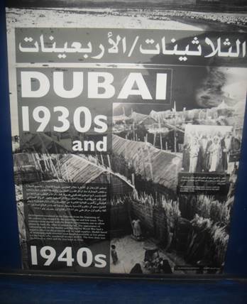 Jak w tamtym czasie wyglądały dzisiejsze emiraty, jak było poza murami królewskich pałaców? Dużo skromniej; obraz życia lat 30 i 40-tych XX wieku można obejrzeć w Dubaju w miejscowym małym muzeum (fot. 1) – drewniane chatynki i ogrodzenia z patyków…