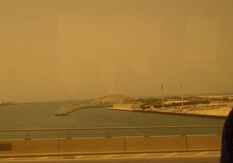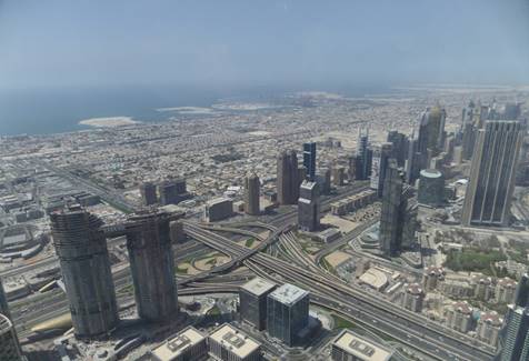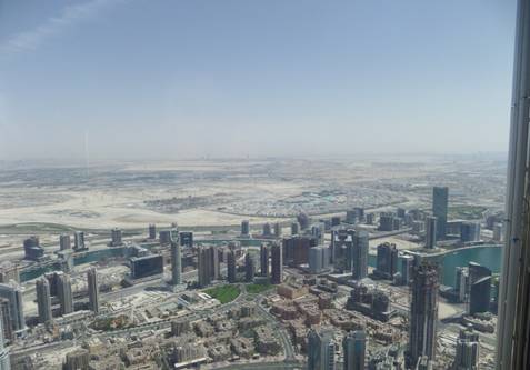 Póki co wycieczka na 126 piętro i wysokość ok. 460 m (winda jedzie dość długo, całe 50 sekund) i kawa w najwyżej na świecie położonej restauracji „Atmosphere„ jest ciekawą przygodą. Widok z tarasu też jest fajny, widać miasto, otaczające je pustynie (fot. 8 i 9), ale i wody zatoki Perskiej.