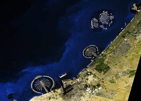 Ale ten akurat interes może okazać się ryzykowny (żeby później nie było, że nie ostrzegałem). Kto wie jednak, czy całość nie zakończy się totalną klapą. Okresowe przerwanie budowy w wyniku światowego kryzysu finansowego roku 2008 powoduje teraz, że wyspy powoli się pogrążają w morzu, a erozja i wymywanie piasku zmienia ich kształt i (jak widać na zdjęciu satelitarnym NASA) coraz mniej przypominają mapę świata (fot. 14). Jest więc groźba, że 14 do tej pory wydanych miliardów USD i wsypane w wodę ok. 320 mln m³ rozpłynie się w morzu.