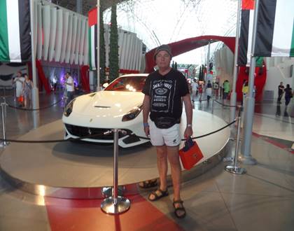 Raczej się jeździ. Czym? Różnie – czasem przemknie coś mikro, jak np. Toyota Corolla, ale na ogół jednak Suv-ami, o rozmiarach XXXXL. Uzupełniająco wypada mieć też coś sportowego – Maserati, Lamborghini lub Ferrari. Zwłaszcza te ostanie są ogólnie dostępne; w Abu Dhabi jest największy na świecie salon firmowy Ferrari, tu można od ręki nabyć coś takiego jak na fot. 24, ale jak się już kilka takich ma w garażu, to także firmową koszulkę, garnitur, czapkę, termos do kawy, dres, breloczek, parasol, portfel czy wózek dziecięcy.