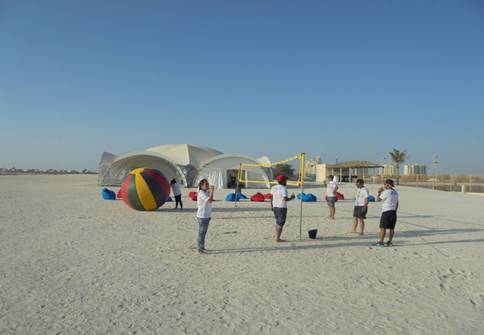 Dużo już napisałem o Dubaju i Abu Dhabi. A jak to wygląda w pozostałych 5 emiratach. Też się starają; na fot. 30 fragment plaży przy naszym hotelu w Ras Al Khaimah, widok ludzi grających w siatkówkę piłką o średnicy ponad 2 metry właściwie nie powinien już dziwić.