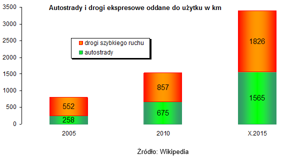Na realizację oczekują opóźnione programy infrastrukturalne. Wg wcześniejszych ustaleń i decyzji łączna sieć autostrad i dróg szybkiego ruchu miała wynieść około 7200 km, w tym 2000 km autostrad. Na dzień 10 października 2015 sieć autostrad wynosiła 1565 km, a dróg ekspresowych 1826 km, łącznie zatem dróg szybkiego ruchu jest w Polsce 3391 km. W latach 2014 – 2023 planuje się zbudowanie 3900 km autostrad i dróg ekspresowych. Autostrady i drogi szybkiego ruchu budowano dotychczas nie tylko z opóźnieniem, ale i przy wyższych kosztach od zakładanych, przy czym należy wspomnieć, że w październiku 2015 r. było ponad 4-krotnie więcej autostrad i dróg ekspresowych niż w 2005 r.