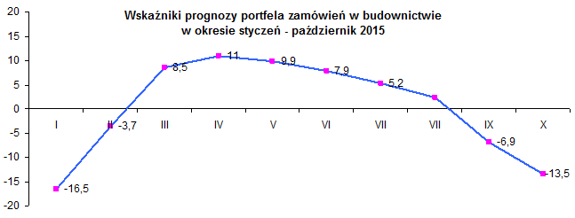 Prognozy portfela zamówień produkcji budowlano-montażowej, po wzroście od stycznia do kwietnia, w kolejnych miesiącach wykazywały tendencję malejącą, a we wrześniu i październiku drastycznie się obniżyły (do wartości ujemnych).