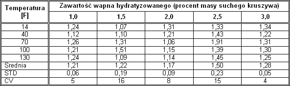 Tablica 1. Stosunek modułu E* dla mieszanki z wapnem hydratyzowanym