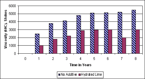 Rysunek 3. Wpływ wapna hydratyzowanego na proces starzenia się
