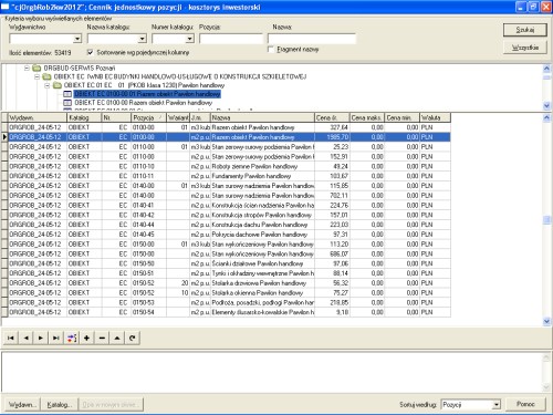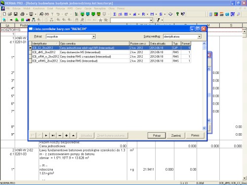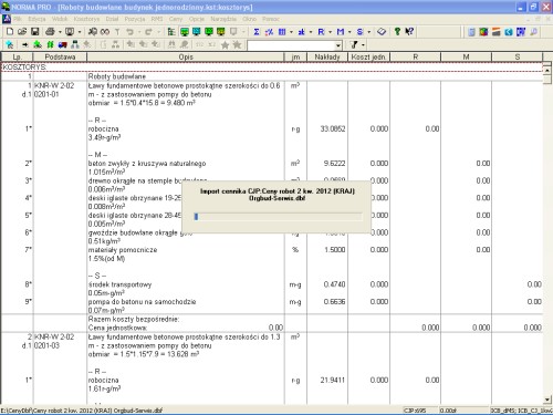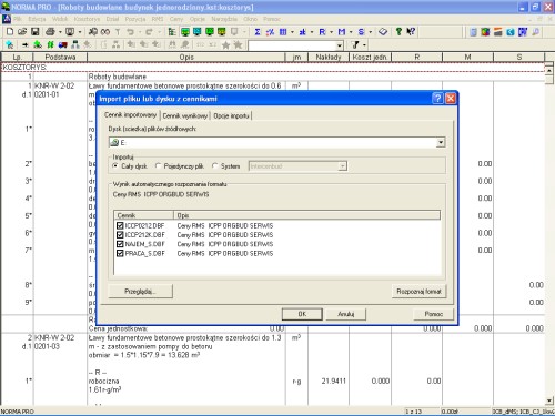 Pora skorzystać z cenników drugiego co do popularności w kraju Serwisu Informacji Cenowych Budownictwa wydawanego przez Orgbud-Serwis. Ośrodek ten wydaje co kwartał na płytach informacje cenowe do wykorzystania przy sporządzaniu kalkulacji metodą szczegółową oraz drugi zbiór z cenami do kalkulacji metodą uproszczoną. W pierwszym przypadku możemy zaimportować ceny materiałów i sprzętu. W drugim - ceny robót.