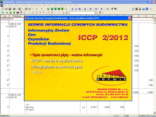 Na pierwszy ogień weźmiemy płytę z Informacyjnym Zestawem Cen Czynników Produkcji Budowlanej – w skrócie ICCP.