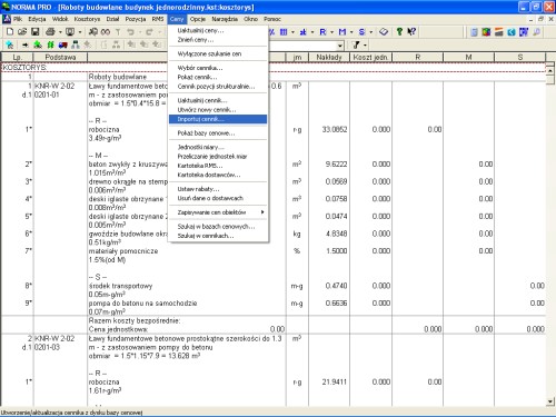 W dwóch poprzednich „Kolejnych krokach w Normie” prześledziliśmy, w jaki sposób dokonać importu cen z INTERCENBUD-u – zaimportowaliśmy ceny średnie RMS, ceny średnie RMS z narzutami, ceny dostawców MS oraz ceny jednostkowe robót wg KNR. To wszystko przedstawia poniższe okienko.