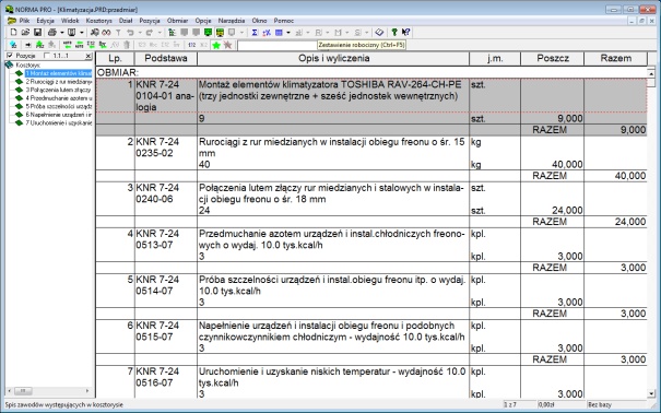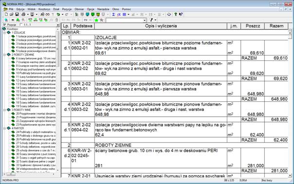 Przycisk „OK” spowoduje wczytanie przedmiarów do Normy. Efekt jest widoczny na rysunku poniżej.