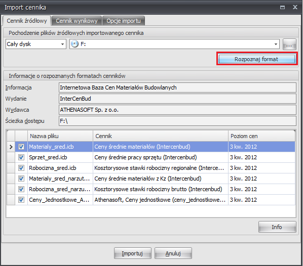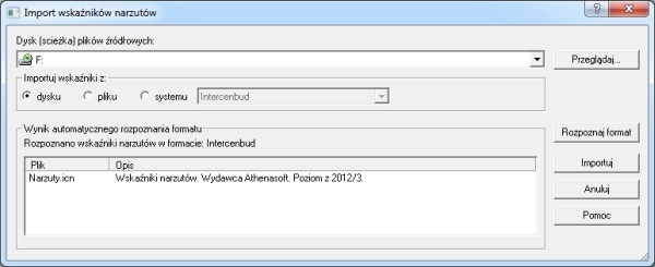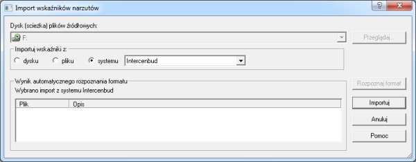 Import można wykonać poprzez automatyczne rozpoznanie dysku (przycisk "Rozpoznaj format").