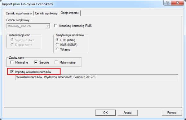 Import wskaźników w programach Norma PRO i Norma STANDARD 4.40