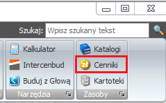 Płytę z cennikami umieszczamy w napędzie CD/DVD. Po uruchomieniu Normy wybieramy z wstążki poleceń przycisk „Cenniki” z zakładki „Zasoby”.