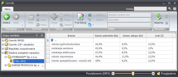 W cennikach RMS oprócz cen nakładów publikowane są również stawki narzutów kosztorysowych. Do tej pory mechanizm importujący cenniki nie umożliwiał automatycznego odczytu tych wartości. Co prawda ręczne przepisanie dwóch, góra trzech liczb nie stanowiło dla Państwa specjalnego problemu, ale było to rozwiązanie co najmniej nieeleganckie. W związku z tym zdecydowaliśmy się na dodanie w naszych programach importu wskaźników narzutów z najpopularniejszych cenników, tj. Intercenbudu oraz Sekocenbudu.
