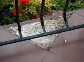 | Powyższe zdjęcia pokazują skutki złego wykonstruowania (a raczej braku) dylatacji obwodowych. Złe uszczelnienie dylatacji powoduje wręcz idealną, oczywiście z punktu widzenia wody, sytuację do dalszej penetracji w głąb podłoża. |