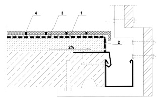 | Przykład prawidłowego rozwiązania konstrukcyjnego uszczelnienia tarasu - wariant z matą drenażową