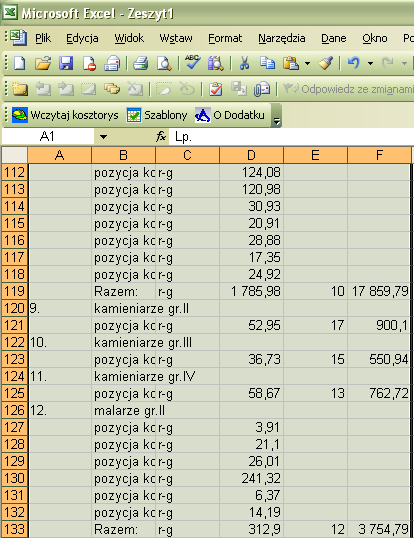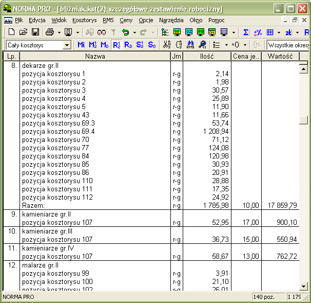 Rys. 3. Szczegółowe zestawienie robocizny