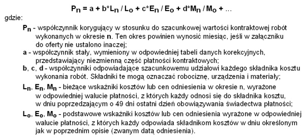 Jeżeli wykonawca nie ukończy robót w czasie określonym w kontrakcie, to korekta cen po tym okresie będzie dokonywana albo wg wskaźników cen odnoszących się do dnia poprzedzającego o 49 dni datę ukończenia robot, albo wg bieżącego wskaźnika ceny. Przyjmuje się wariant korzystniejszy dla zamawiającego.