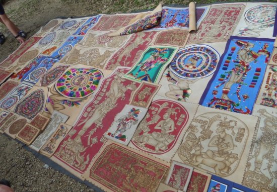 Najsłynniejszym artefaktem Świątyni Inskrypcji jest z kolei relief z płyty nagrobnej Pakala, którego najrozmaitsze kopie, od papierowych do malowanych lub wytłaczanych w skórze, można za niewielkie pieniądze kupić na miejscu (fot. 4), z której to propozycji autor niniejszego felietonu oczywiście skorzystał.