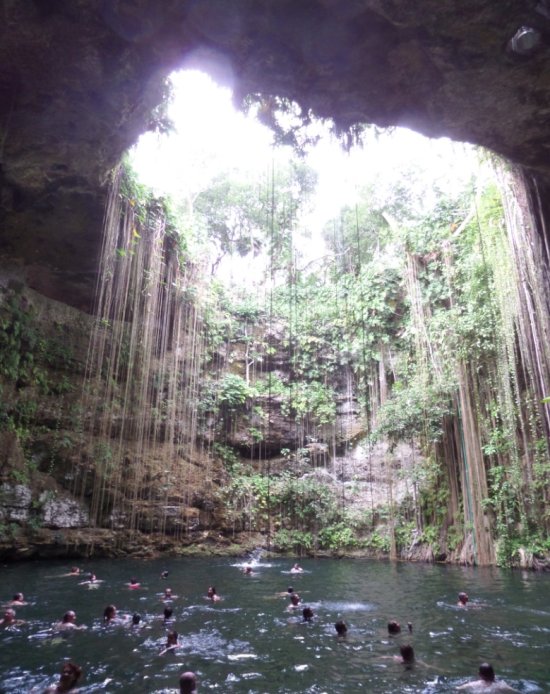 Sytuacja dogmatów wiary i porządek obrzędów ulegały też stopniowym zmianom, np. Toltekowie, którzy ok. 900 roku n.e. opanowali północ Jukatanu i wprowadzili kult Pierzastego Węża, zwanego w języku Majów Kukulkanem, wymyślili ciekawą nowość obrzędową, kultywowaną w okolicach stołecznego miasta Chichén Itzá (gdzie też piramid i świątyń nie brakuje, fot. 11 i 12), jaką stało się wrzucanie ludzi do głębokich studni krasowych, zwanych cenotami (fot. 13), w nadziei zapewnienia większych opadów deszczu, tak potrzebnych w rolnictwie.