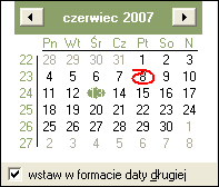 Na dole okna kalendarza znajduje się kratka, w której można zaznaczyć w jakim formacie wybrana data ma być wstawiona na stronę tytułową. Może to być format daty krótkiej lub długiej. Formaty te to standardowo: